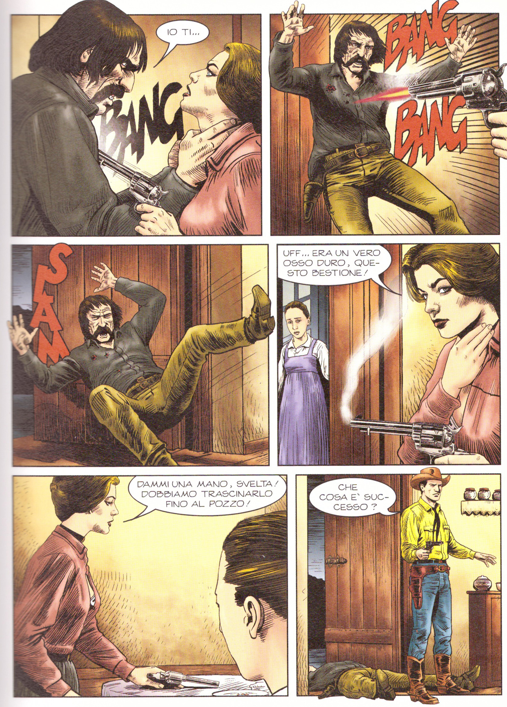 Per evitare la pallottola del bandito, Willer si fa scudo del pezzo di donna davanti a lui e Amabel Collins, alias Janet Frexi, paga con la vita il brutto tiro del Ranger, rimanendo uccisa a terra. È lei, infatti, a beccarsi una fucilata nello stomaco: un colpo che non le lascia scampo.