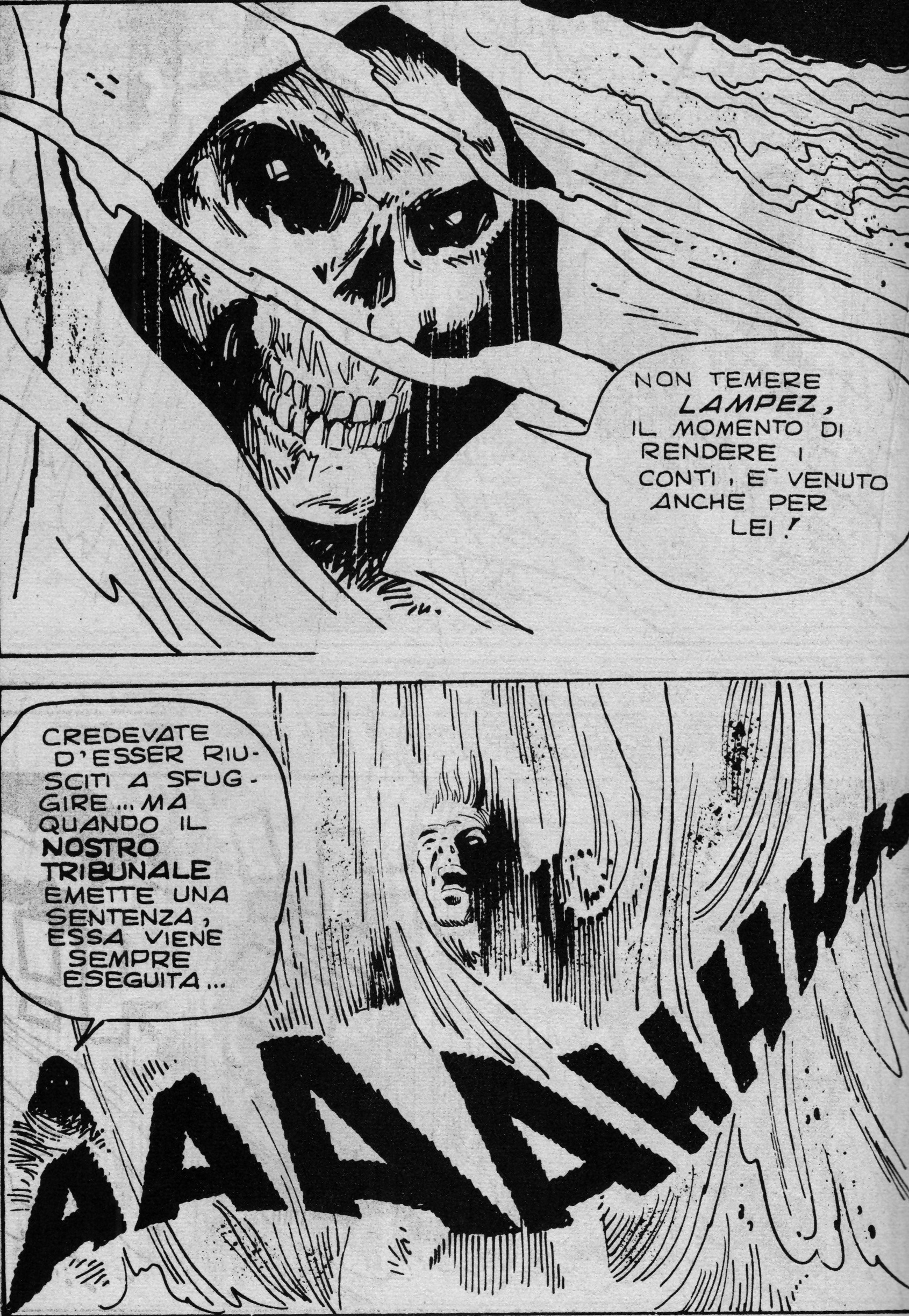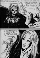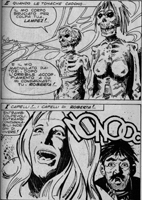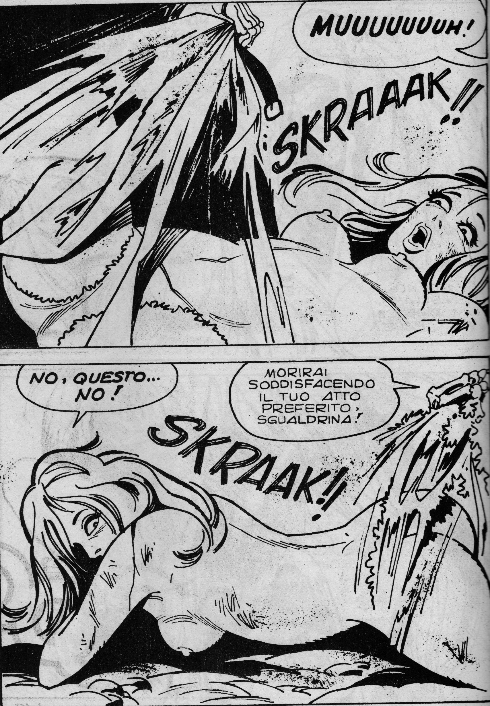 «Uccidila!», ordinò secca a una delle guardie, puntando Anafra con gli occhi. La Sceriffa rivolse un rapido sguardo a Dago, senza aspettarsi alcun aiuto, perché sapeva che ormai aveva ceduto all'influsso della strega. D'altra parte, lei stessa abusava di questo potere da una vita. SZOCK Però si sbagliava. Lo capì quando vide, incredula, la daga dell'avventuriero immersa nella pancia di Lunalia. La Regina mugolò un lamento innaturale, un terribile stridio fatto di rabbia e rancore. «Maledetta...», sibilò disperata, appena dopo, rivolta ad Anafra. Dago infatti era sotto il suo controllo, ma aveva sottovalutato il suo attaccamento alla Sceriffa: finora non vi era stato nessun assalto nei suoi confronti, almeno all'interno dell'oasi. L'avventuriero, da parte sua, scosso dal pericolo incombente su Anafra, aveva subito preso la decisione giusta: colpire Lunalia per fermare i suoi cadaveri. Le guardie si erano infatti paralizzate, cosa del resto normale per dei cadaveri, compresa quella che avrebbe dovuto colpire Anafra. Il fuoco del bivacco aveva ripreso vigore. Le fronde dell’Oasi cominciarono a diradarsi. Il sole purpureo di Zothique filtrava abbondante. Dago usò la fiamma per bruciare - non certo viva... - una delle guardie, come esempio per gli altri cadaveri, che lentamente, molto lentamente, ritornarono nel fitto della macchia. Lunalia crollò sulle ginocchia. E quindi strisciò disperata verso il fuoco, quasi a cercare un'ultima fonte di calore. Ma si dissolse in cenere pochi attimi dopo, come avesse bruciato per ore.