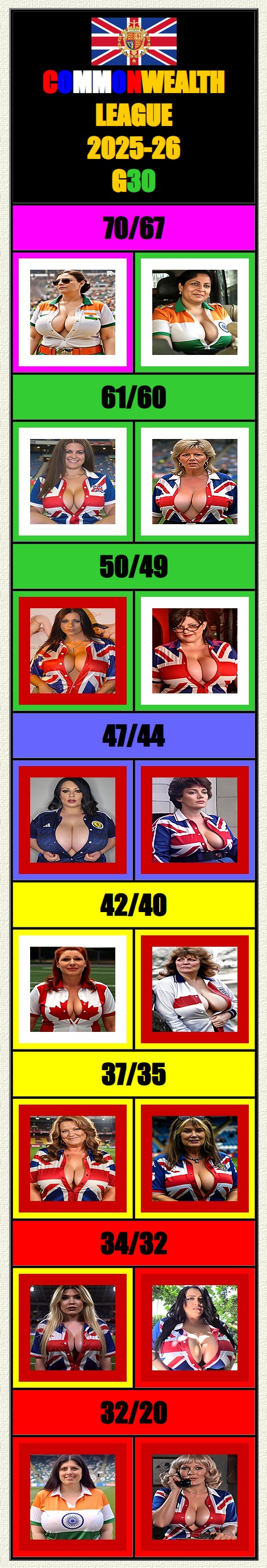 Regional Leagues viene attribuito un punto in più per ogni unità di differenza