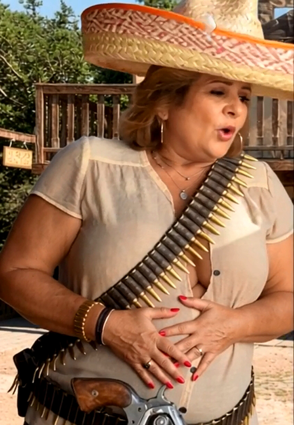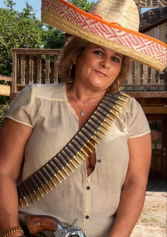 Il leggero camicione sempre sbottonato, tagliato in linea obliqua da una fornita cartucciera, era la sua divisa caratteristica: la seducente scollatura era un esplicito invito a venerarla. Spavalda e aggressiva, non sembrava avere limiti, e nessuno finora aveva osato colpirla. La sua banda si stava scontrando per l'ennesima volta con i desperados di Fernando, il bandito in concorrenza con lei per il controllo dei traffici nella zona di El Paso.