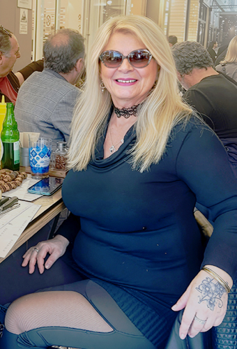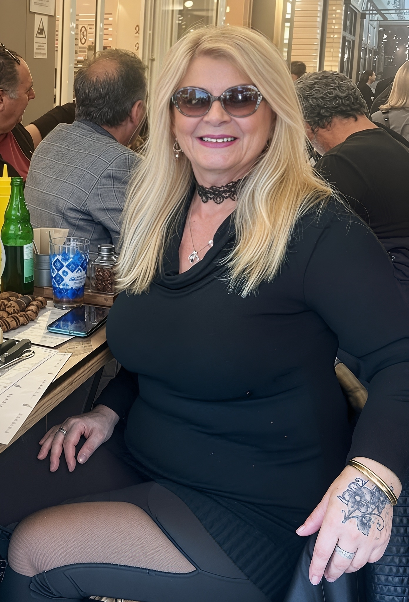 destinata a passare senza lasciare tracce. Quella sera era più zozza del solito: indossava una camicetta bianca con i bottoni allentati fino all'ombelico; le consumate tette da vacca cinquantenne stavano per scoppiarle fuori; faceva schifo.