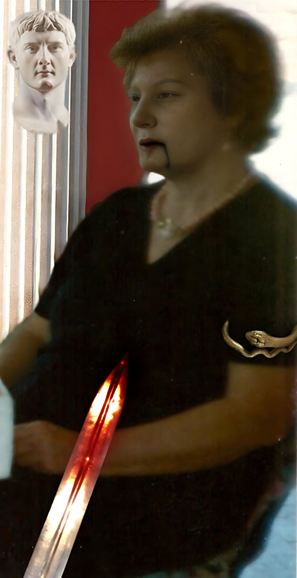 Lei che trattiene a stento il sangue che le sale in bocca e che cerca di mantenere un contegno da Augusta, lucido e austero, con la segreta speranza di non ricevere altri colpi.