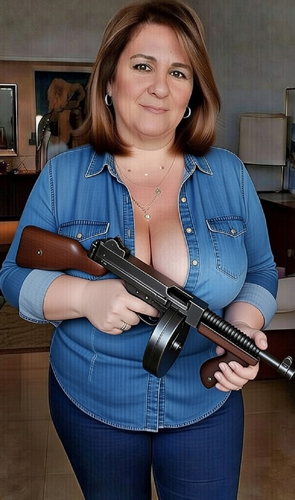 Pochi secondi e il suo pensiero va alla socia che non è più al suo fianco. Mette a fuoco lo sguardo e vede tre giovani puttanelle che le fanno cenno di scendere dall’auto. Impugnano delle classiche Ruger calibro 22, da 10 colpi. È un calibro da non sottovalutare, ma che non può mettere troppa paura a una bestia come lei. La Frentzen non esita un attimo: apre lentamente la portiera, ma l'altra mano se la passa dietro la schiena - sotto il camicione bianco, portato fuori dai pantaloni e sbottonato aggressivamente fino allo stomaco - per afferrare la sua Beretta di grosso calibro, 15 colpi più quello in canna. È sotto tiro e ogni suo movimento è controllato, ma l'airbag scoppiato la copre abbastanza. La gamba sinistra spunta dalla portiera semiaperta, il tacco dello stivalone affonda nel terreno. Una delle ragazze la provoca: «Su, bella... vieni fuori! Che aspetti?». Anna abbassa il finestrino, solleva di scatto il braccio destro e preme il grilletto un paio di volte - Bang! (A1), Bang! (A2) - facendone fuori una. Le altre due, allora, iniziano a far fuoco contro l’auto. Stump! (a1), Stump! (b1-1!), Stump! (a2-2!), Stump! (b2), Stump! (a3-3!) Anna si scuote sul sedile, ferita tre volte all’addome. Cerca di reagire, puntando la pistola, ma non ha tempo per mirare di nuovo, perché le arriva addosso un’altra scarica di piombo... Stump! (b3-4!), Stump! (a4-5!), Stump! (b4), Stump! (a5), Stump! (b5-7!) Anna è colpita ripetutamente, allarga le braccia e scalcia, inarcandosi sul sedile, mentre il busto le si riempie di piccoli fori, grandi come i bottoncini della camicia, ma cuciti in ordine sparso. Le sicarie interrompono momentaneamente il fuoco. Anna stringe ancora la pistola nella mano destra, appoggiata di fianco sul sedile. Il suo piede sinistro, fuori dall’auto, striscia lento sul suolo, avanti e indietro. Ha la testa piegata sul petto. Controlla le sue tette, che pulsano ansiose sotto il camicione da puttana. Anna comincia ad avere paura. Non ha ancora incassato colpi mortali, ma se quelle non si fermano, per lei sono guai seri, si gioca la pelle. Anna Frentzen è una super cinquantenne sempre in tiro: stivaloni, camicie sbottonate, tette a penzoloni, carne che scoppia da tutte le parti; spregiudicata e aggressiva, finora non l'ha fermata nessuno. Ruota lentamente il bacino e anche l’altra gamba si poggia sul terreno. Stump! (b6-8!), Stump! (b7-9!) Ma non appena prova a sollevare il braccio per sparare, una delle sicarie, scivolata sul lato opposto dell'auto, la colpisce alla schiena, vigliaccamente e inaspettatamente. Sussulta e si spinge dal sedile verso l’esterno, puntellandosi con la schiena al bordo del montante, riuscendo in qualche modo a mettersi in piedi. Poi con lo sguardo torna sulle