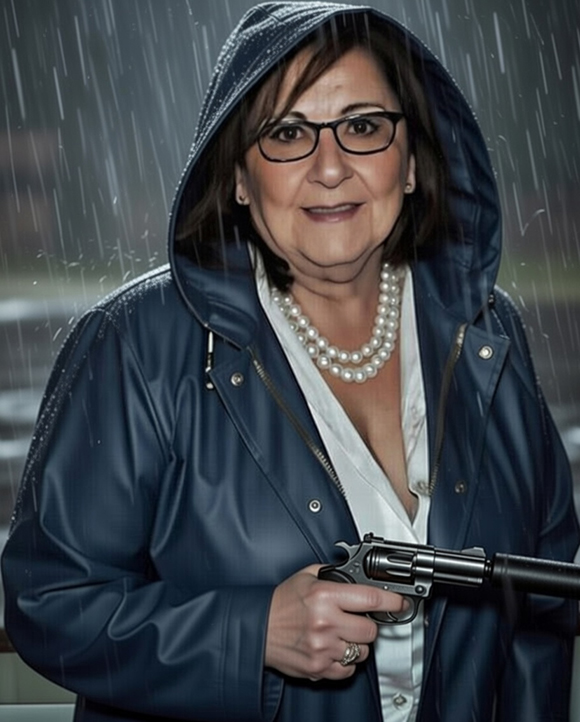 Gli tende una trappola in uno spiazzo di periferia, attirandolo con un falso affare: soldi sporchi da ripulire. Lo attende imbottita di carne come al solito, per rallentargli i riflessi; con una camicia di jeans che ne evidenzia la possanza. Si è informata e pare abbia un certo gusto in fatto di donne; secondo altri sarebbe un necrofilo. Nel dubbio ha omesso il fondotinta: fra tette, grasso e occhi da zozza, dovrebbe cuocersi a dovere.