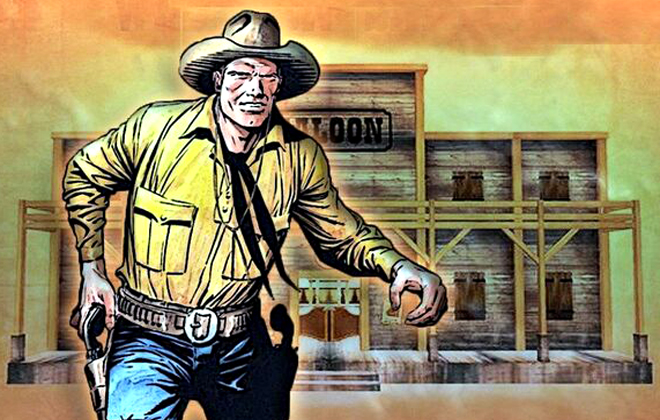 Non c’è dubbio, quell’uomo è proprio Asso di Picche, un giocatore professionista che porta il simbolo dell’asso di picche sul cappello e sulle pistole. Ti sorprende vederlo da queste parti: solitamente bazzica nelle case da gioco di New Orleans e Tucson, o sui battelli che navigano il Mississippi.