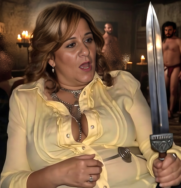 «Guardate quanti cesari cago dalla fregna...!», aveva raccolto le monete della serata e si stava toccando là sotto, insaziabile. Layla, la potente zoccola fenicia, parecchio famosa nei bassifondi di Roma, era un piacere che andava sempre di moda tra i clienti del Thyrsus Invictus, il lupanare gestito da Quintus Lentulus Batiatus. Era una donna libera, e dopo anni di attività, anche abbastanza ricca da smettere, ma ormai era una questione di potere e prestigio. La sua ascesa era continua e potenzialmente inarrestabile; andando avanti così, avrebbe sposato qualche pezzo grosso rimasto vedovo, oppure - scelta la vittima - l'avrebbe spinta a ripudiare la moglie. Forse avrebbe puntato lo stesso Batiatus, che aveva accumulato grandi ricchezze. Layla stava diventando sempre più potente, forse troppo per una prostituta. Figure influenti si erano invaghite della sua carne grassa, delle mitiche zinne e del subdolo carisma; e delle sue caratteristiche tuniche munite di borchioncini centrali, sempre allentati fino allo stomaco. I concorrenti erano pronti a fare una grossa offerta a Batiatus, e a scatenare un'asta per portarla a servire nei loro lupanari. In ogni caso Layla era il pezzo forte della ditta e un esempio di eccellenza professionale per le colleghe. A dispetto di un'età importante per una zoccola, per ambizione e spavalderia sembrava destinata a una carriera ancora lunga; perciò Batiatus l'aveva messa sotto contratto per altri cinque anni, ritoccando l'ingaggio in alto. L'inarrestabile potenza solleticava la sua smisurata ambizione. «A me un ferro nella panza mi fa una sega…!», non era la prima volta che la fenicia se ne vantava, dopo aver bevuto. Il gladio di Roma aveva vinto su tutti i maschi del mondo, sventrando leghe infinite di budella, che se annodate tra loro avrebbero potuto allungarsi su tutte le strade dell'Impero, non una ma mille volte; e tuttavia lei si sentiva invincibile. Superba della possanza giunonica e della bellezza matura, giunta a perfezione, era sicura del fatto suo e ne aveva ben donde: sembrava infatti portatrice di un retaggio ancestrale, magnifico, aristocratico.