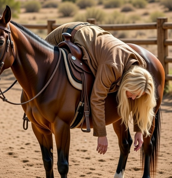La donna di Tex si china sul