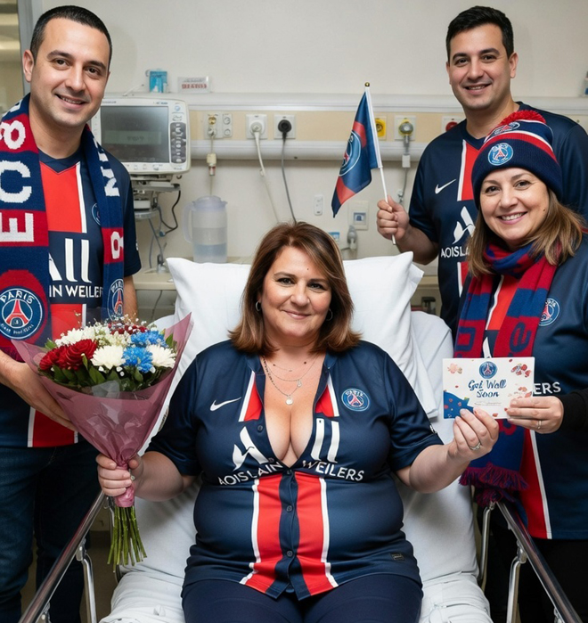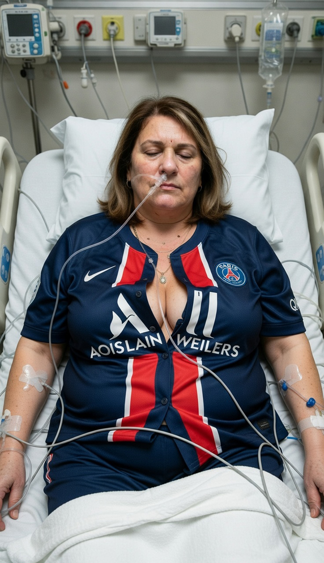 La stanza d'ospedale odorava di disinfettante misto a fiori freschi. Layla Duvalier era seduta sul letto, la schiena sorretta da due cuscini, la maglia del PSG - sempre quella - gonfiata dalle sue forme pesanti.